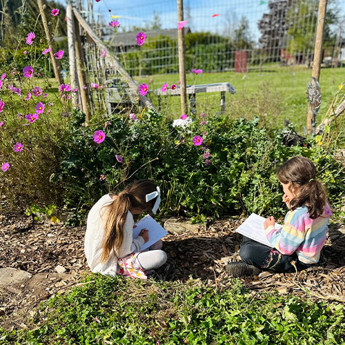 This class blends language arts, reading, writing, math, life science, geography, history, art, nature crafts, farm animal care, and gardening. Students spend their days outdoors exploring the farm, engaging in hands-on lessons, and deepening academic foundations. Mid-year conferences help us touch base on goals and development. Morning and afternoon options available.